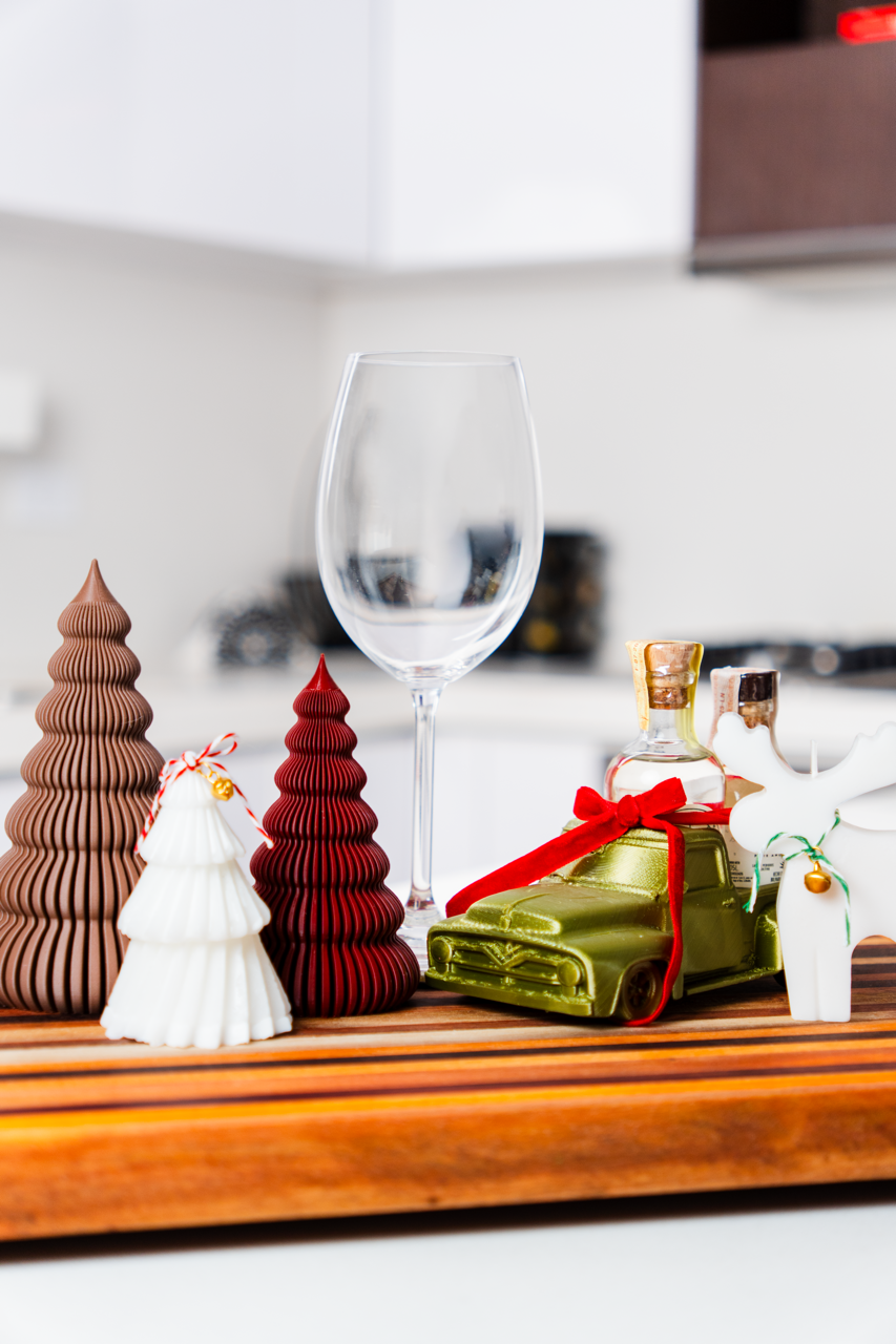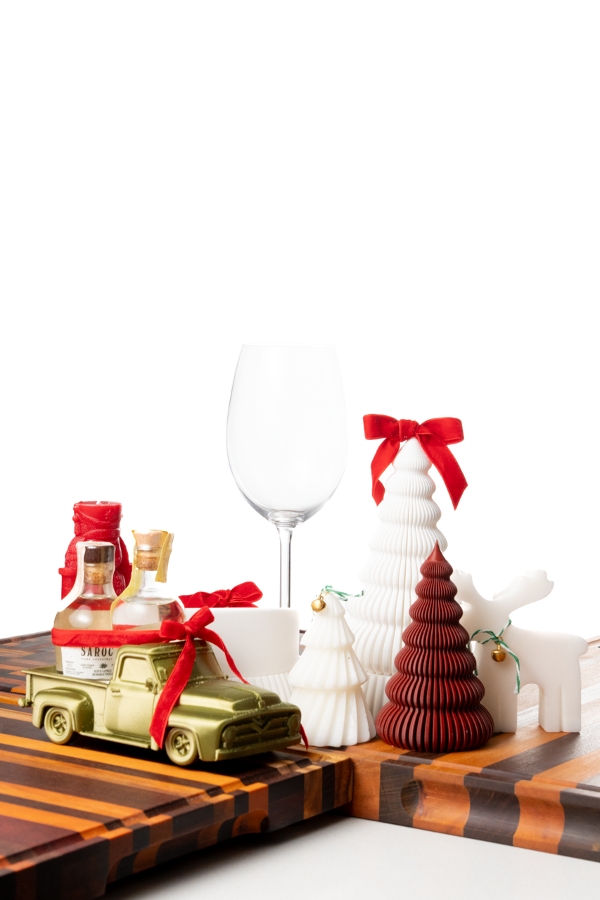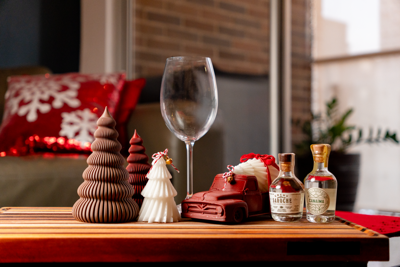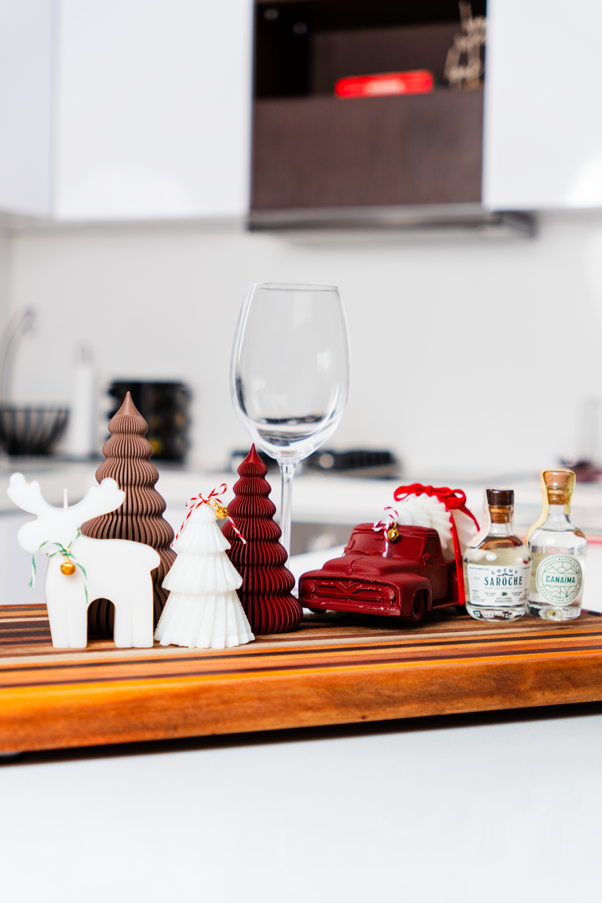 José Antonio quiso regalarle a sus amigos y clientes un detalle único de navidad: Tablas de madera para cocina, decoradas con velas, detalles en impresión 3D y mini botellas de Cocuy Saroche. Ésta sesión de fotos es un recuerdo de éste detalle tan único y especial.